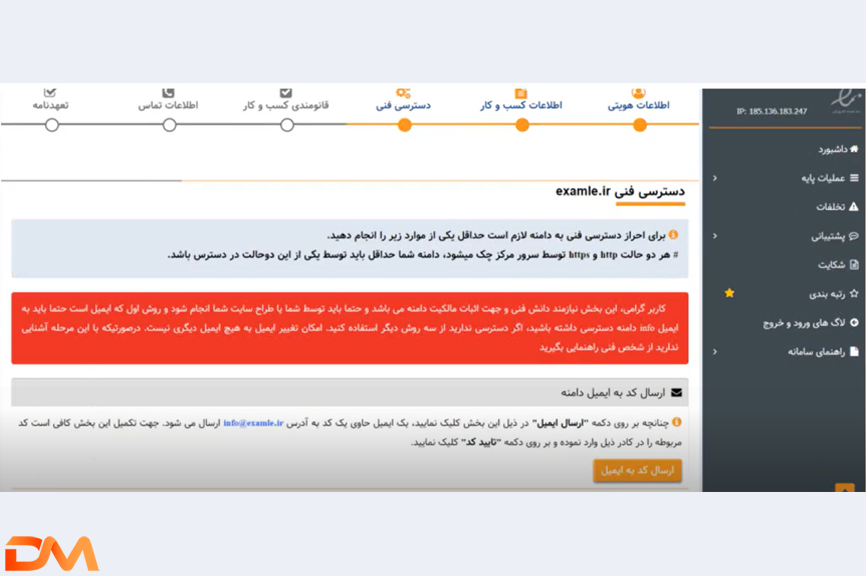 - احراز هویت صاحب کسبوکار: مدارک هویتی مالک سایت (کارت ملی یا شناسنامه) باید تأیید شود.