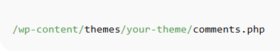 در وردپرس، تمام دیدگاهها و فرم ارسال نظر از طریق فایلی به نام comments.php مدیریت میشوند. این فایل معمولاً در مسیر زیر قرار دارد: